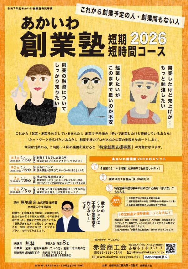 ※この創業塾は赤磐市が主催し、赤磐商工会が受託し運営します。